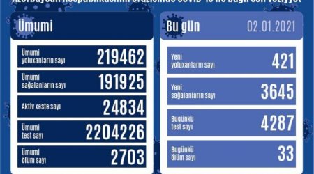 "Covid-19" son sutkada 33 nəfərin həyatına son qoydu