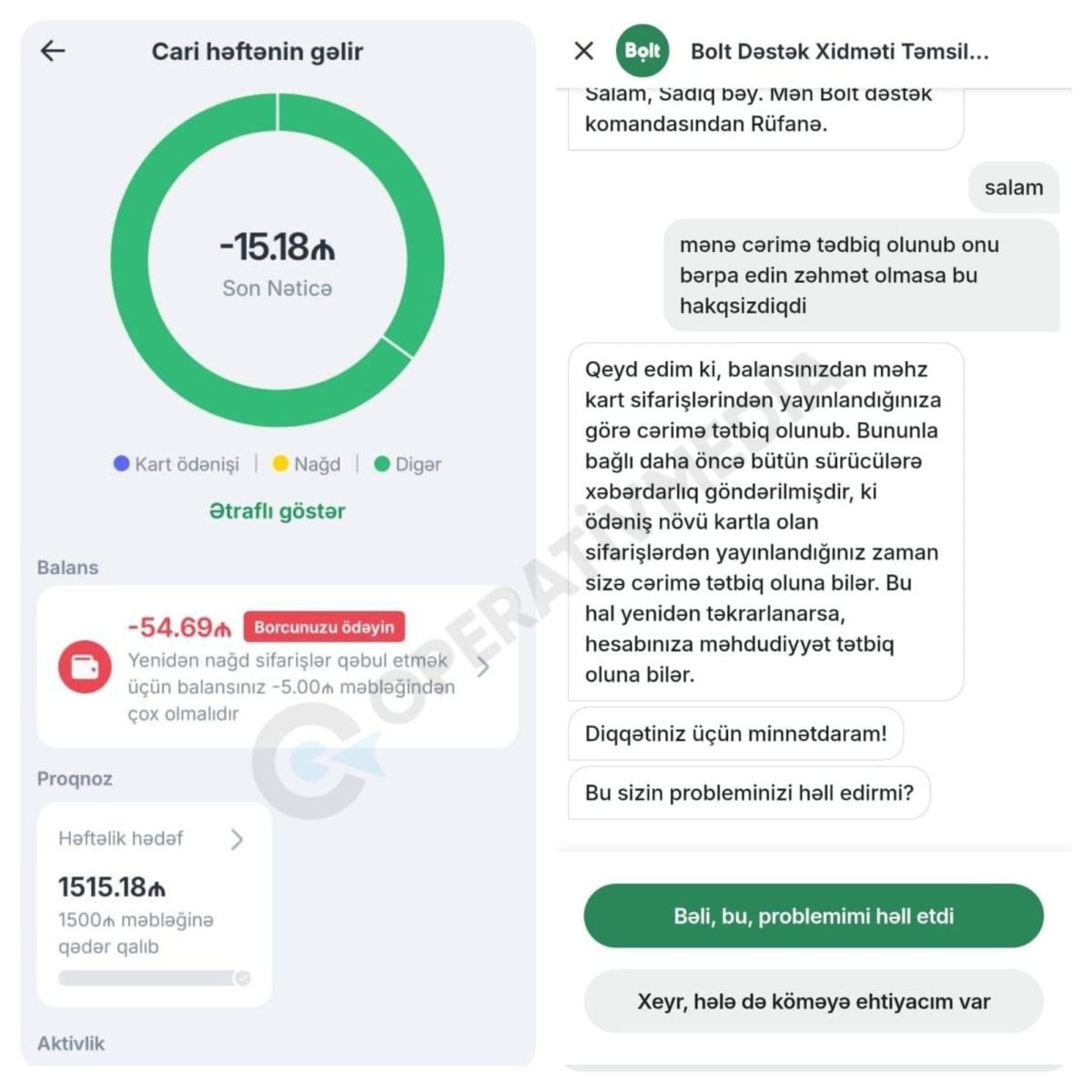 Onlar qeyd ediblər ki, balanslarında birdən-birə mənfi məbləğ yaranıb. "Bolt"un dəstək xidməti isə məsələyə belə münasibət bildirib:
