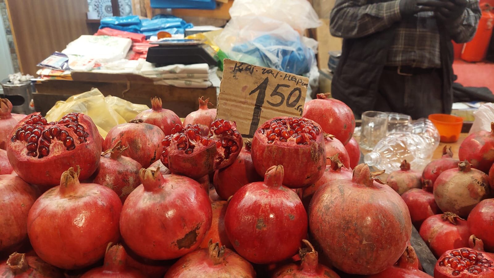 Bazara daxil olanda ilk diqqət çəkən şey meyvələrin rəngarəngliyi oldu. Nar bir manata, üzüm isə 1–2 manat arasında satılır.