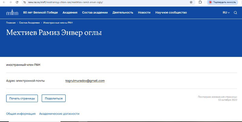 Onun adı Rusiya Elmlər Akademiyasının saytında da yerləşdirilib.