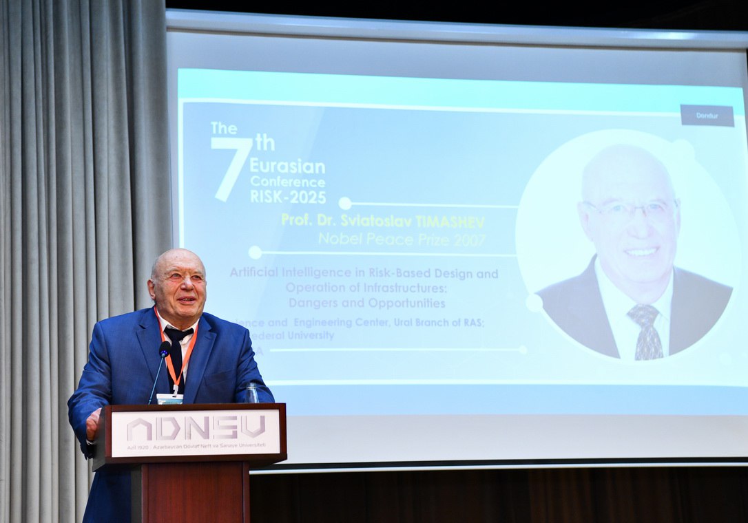Daha sonra Proqram Komitəsinin həmsədri, Rusiya Elmlər Akademiyasının Ural Federal Universitetinin Elm və Mühəndislik Mərkəzinin rəhbəri, Nobel Sülh Mükafatı laureatı, professor Svyatoslav Timashev “İnfrastrukturların risk əsaslı dizaynında və istismarında süni intellekt: təhlükələr və imkanlar” mövzusunda məruzə ilə çıxış edib. O, süni intellektin sənaye sistemlərində tətbiqinin həm potensial təhlükələri, həm də mühüm imkanları barədə elmi arqumentlər irəli sürüb. Timashev qeyd edib ki, risk yalnız təhlükə deyil, eyni zamanda inkişafın zəruri mərhələsidir. O, infrastruktur layihələrinin dizaynında süni intellekt alqoritmlərinin etik və təhlükəsizlik aspektlərinin daha dərindən araşdırılmasının vacibliyinə diqqət çəkib.