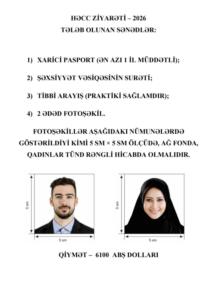 Səudiyyə Ərəbistanı Krallığının Həcc və Ümrə nazirliyinin tövsiyəsi əsasında bu il Həcc ziyarəti üçün sənədlərin qəbuluna artıq indidən start verilir.