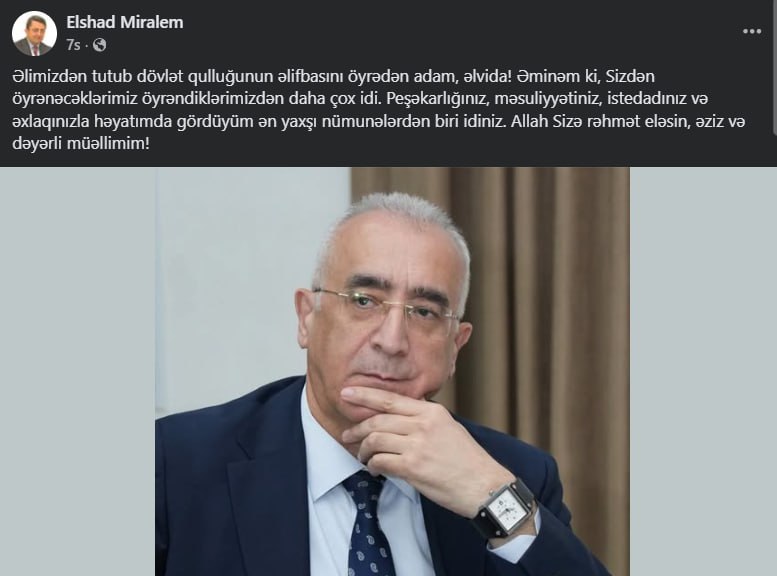 Bizim.Media xəbər verir ki, bu barədə Aparat rəhbərinin müavini Elşad Miraləm sosial şəbəkə hesabında məlumat verib.