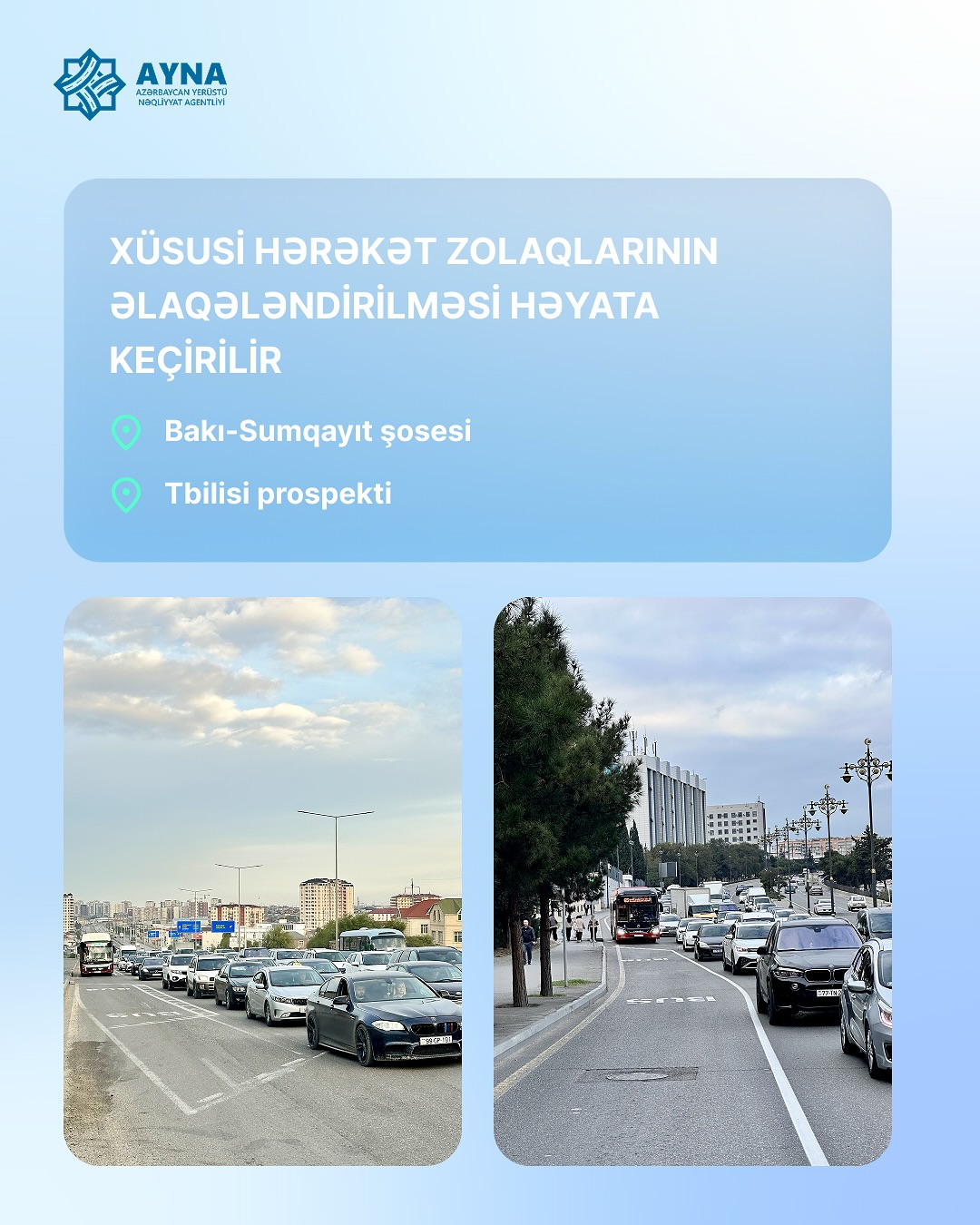 Bu barədə Bizim.Media-ya Rəqəmsal İnkişaf və Nəqliyyat Nazirliyi yanında Azərbaycan Yerüstü Nəqliyyat Agentliyinə (AYNA) istinadən xəbər verir.