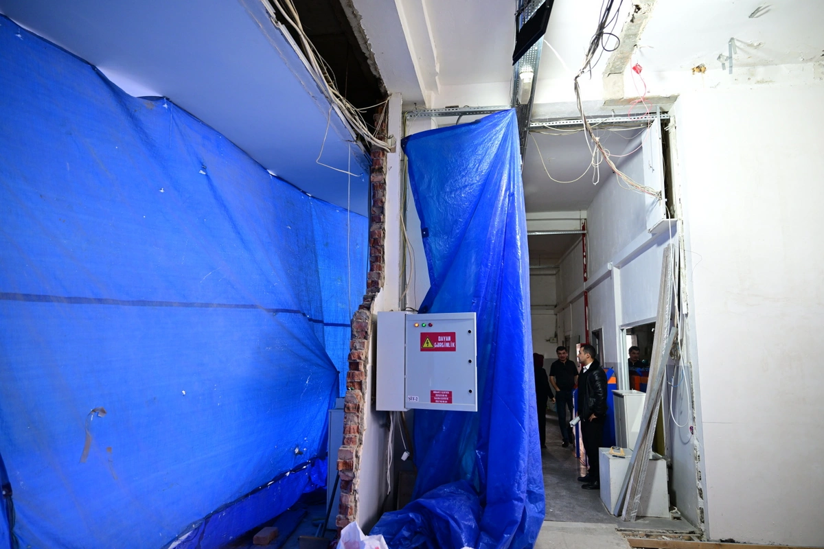 Abidənin arakəsmə divarları sökülüb, pilləkən hissəsində ağır dəmir konstruksiya quraşdırılaraq əlavə sahə yaradılıb, döşəməyə beton tökülüb, ticarət zalında dəmir konstruksiyalar vasitəsilə əlavə mağazalar inşa edilib.