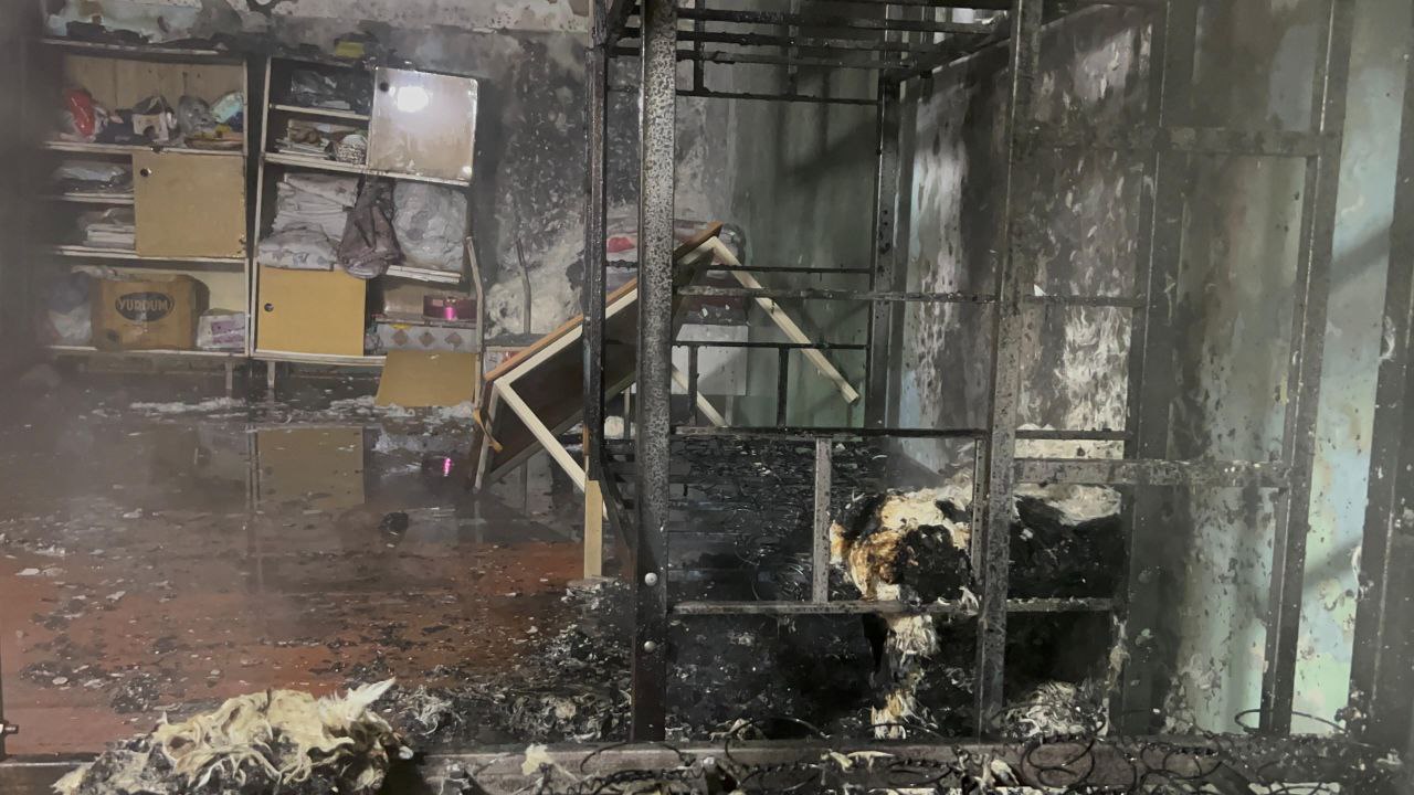 Belə ki, ümumi sahəsi 800 kv metr olan 16 otaqdan ibarət korpusun ikinci mərtəbəsində ümumi sahəsi 40 kv metr olan otaqda 2 ədəd dolab 3 ədəd çarpayı və döşəmə yanıb. Otağın qalan hissəsi isə yanğından mühafizə olunub.