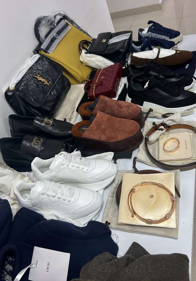 Vətəndaşın yüklərinə baxış zamanı ona məxsus baqajdan və əl çantasından əvvəlcədən gömrük orqanına bəyan edilməyən ayaqqabı, çanta, üst geyimlərindən ibarət 32 ədəd kommersiya təyinatlı brend məhsullar (Celine, Chanel, Hermes, Dolce & Gabanna, Dior, Burberry, Louis Vuitton, Prada, Loro Piano) və “Bulqari” markalı zərgərlik məmulatları aşkar edilib.