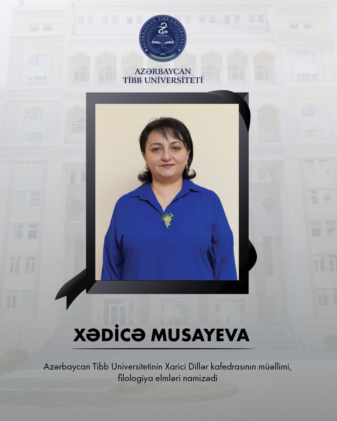 Azərbaycan Tibb Universitetinin (ATU) müəllimi Xədicə Elxan qızı Musayeva vəfat edib.