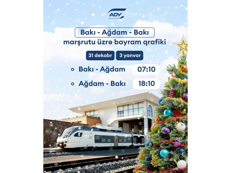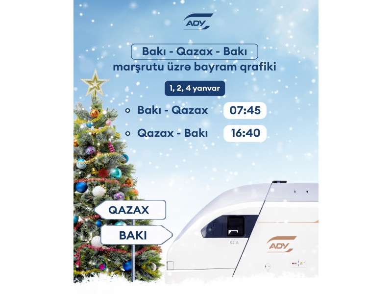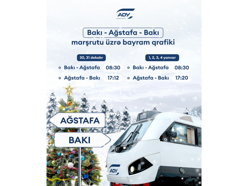 Bildirilib ki, 31 dekabr və 1, 2, 3 və 4 yanvar tarixlərində Bakı-Qəbələ-Bakı, 1, 2 və 4 yanvar tarixlərində Bakı-Qazax-Bakı, 30 və 31 dekabr, eləcə də 1, 2, 3 və 4 yanvar tarixlərində Bakı-Ağstafa-Bakı, 31 dekabr və 3 yanvar tarixlərində Bakı-Ağdam-Bakı marşrutları üzrə qatarlar hər iki istiqamətdə hərəkətdə olacaq.