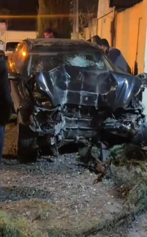 Ağcabədidə avtomobil darvazaya çırpılıb.