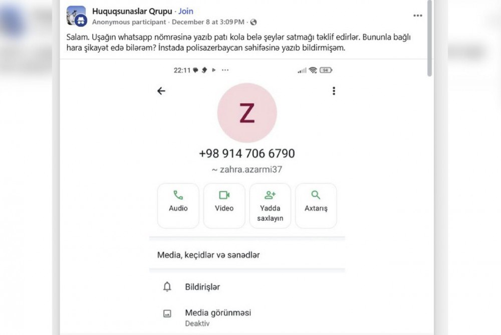Sosial şəbəkədə paylaşım edən valideyn övladına xarici, xüsusilə İran nömrələri vasitəsilə yazaraq narkotik maddə təklif edən şəxslərin olduğunu bildirib.