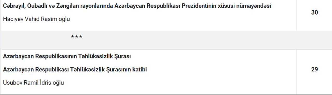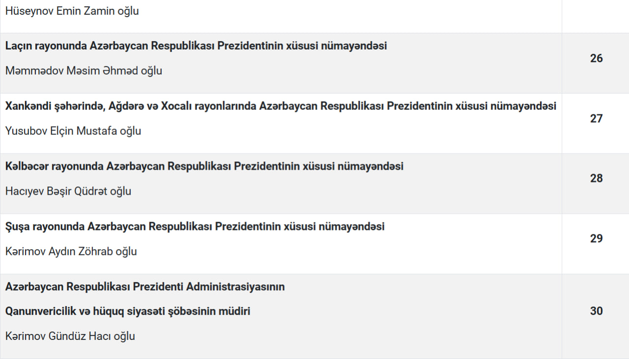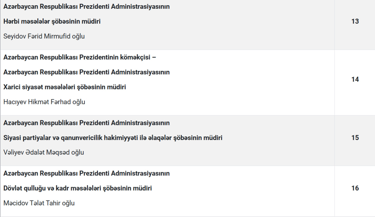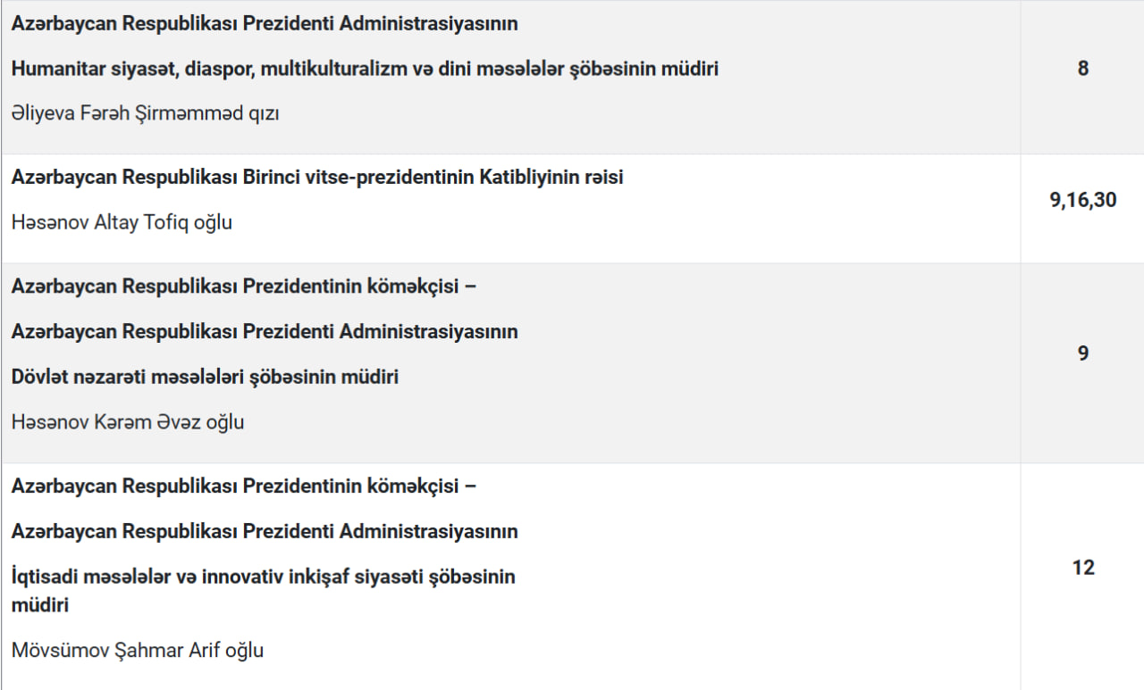 Qeyd: Vətəndaşlar Azərbaycan Respublikası Prezidenti Administrasiyasının Vətəndaş Qəbulu Mərkəzində qəbul olunurlar.