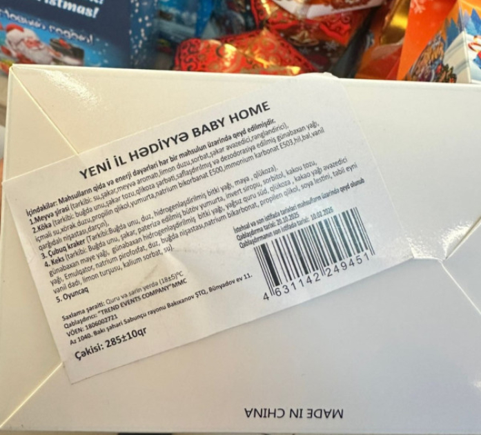 Aşkarlanan uyğunsuzluqlarla əlaqədar mövcud tələblərə cavab verməyən 3 min 68 ədəd hədiyyə qutusu müvafiq qaydada aktlaşdırılaraq satışdan kənarlaşdırılıb.