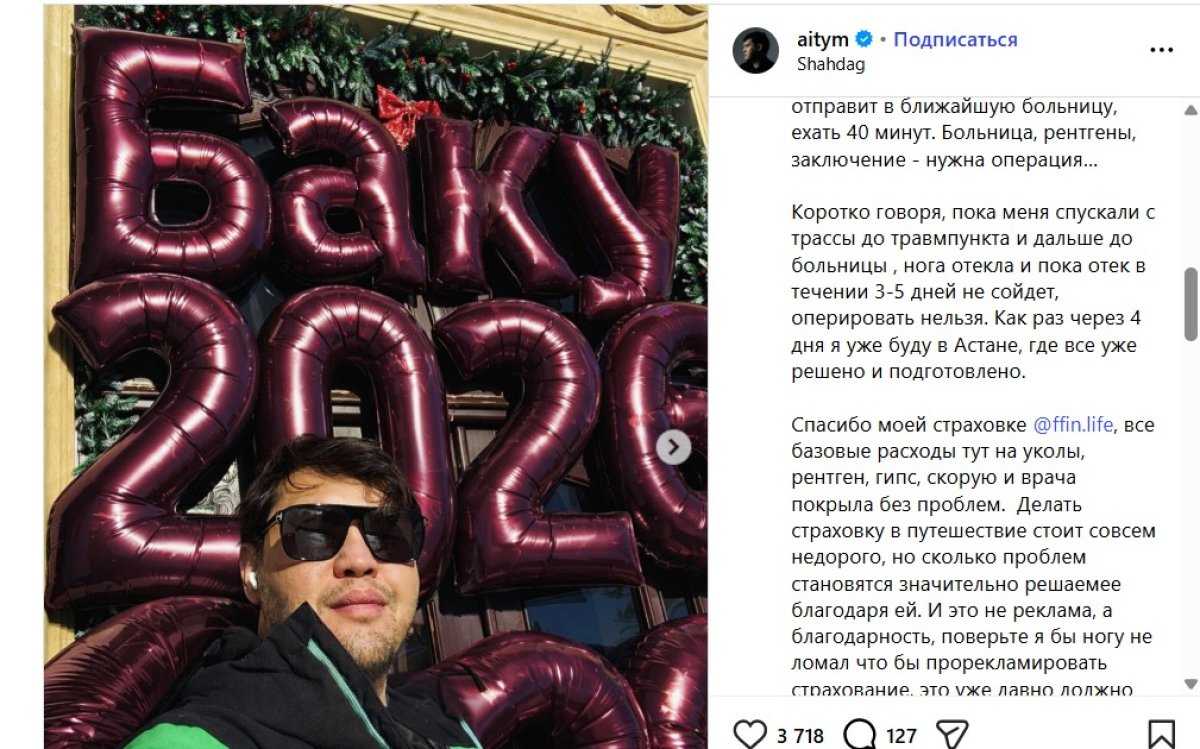 Ayıtbek Amangeldinin sözlərinə görə, Yeni il ərəfəsində dostları ilə birlikdə Almaniya, Türkiyə və Qazaxıstandan Bakıya gəliblər. Məqsəd sevdikləri Zlata adlı yaxınlarını dəstəkləmək, ona ailə istiliyini və mənəvi dayaq hissini yaşatmaq olub. Bunun müqabilində Zlata onlar üçün Bakı və Şahdağda maraqlı proqram təşkil edib.