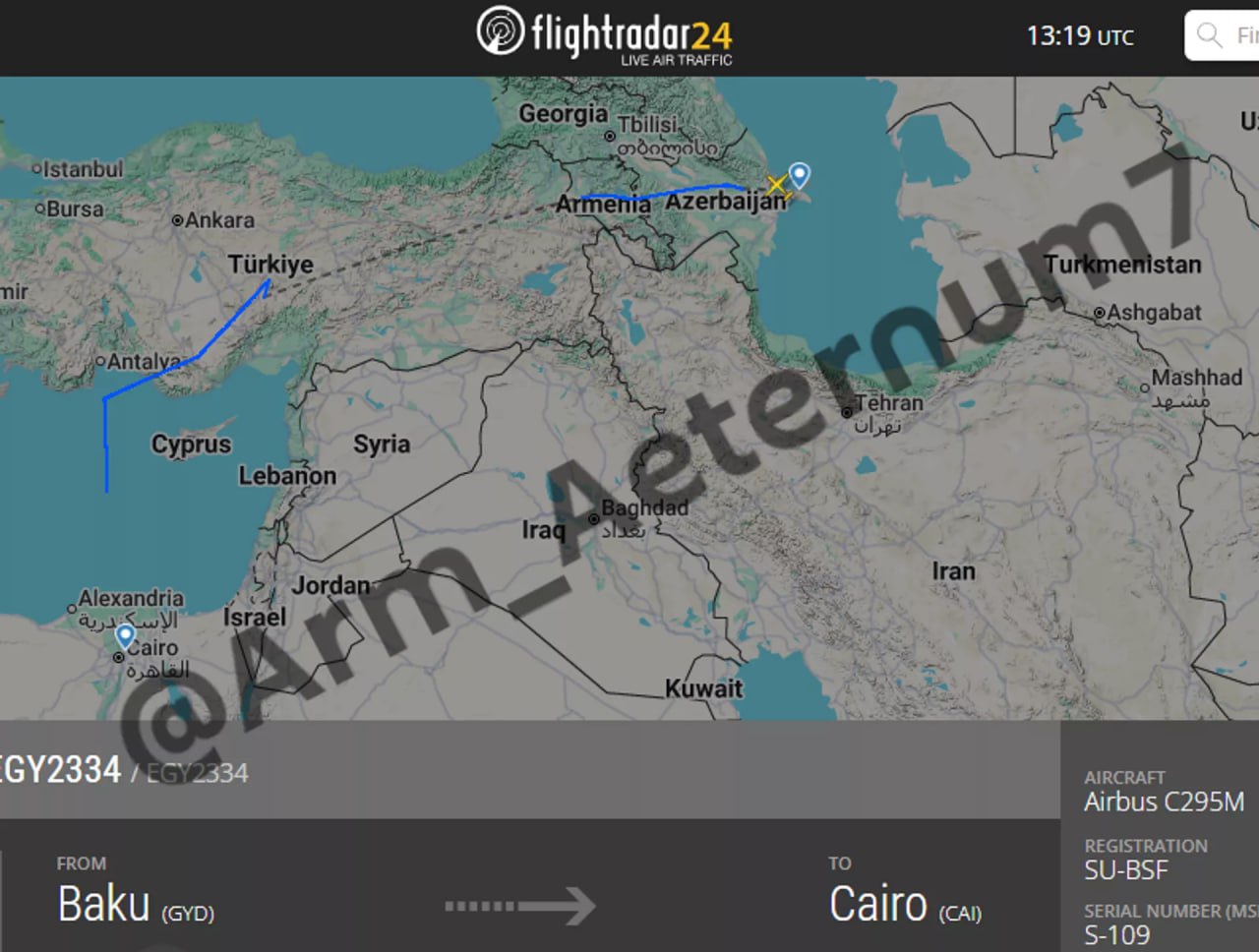 Misirdən havaya qalxan CASA C295 tipli hərbi-nəqliyyat təyyarəsi Azərbaycan istiqamətində uçuş zamanı Ermənistanın hava məkanından istifadə edib.