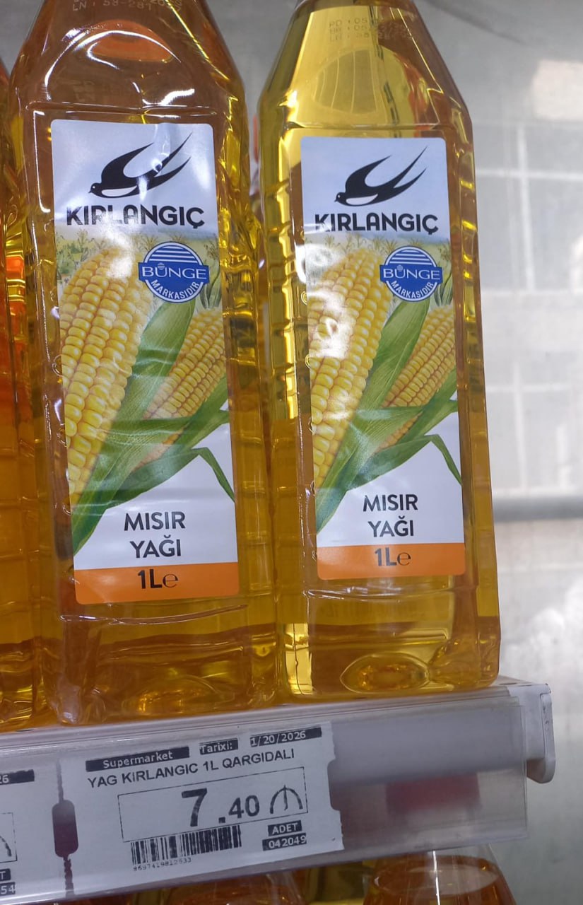 Bu gündən Türkiyənin istehsalı olan 1 litrlik "Kırlangıç" duru yağının (qarğıdalı) qiyməti 7,4 manat olub. Bir ay əvvəl bazarda sözügedən yağın qiyməti 5.6-6.6 manat arasında dəyişirdi.