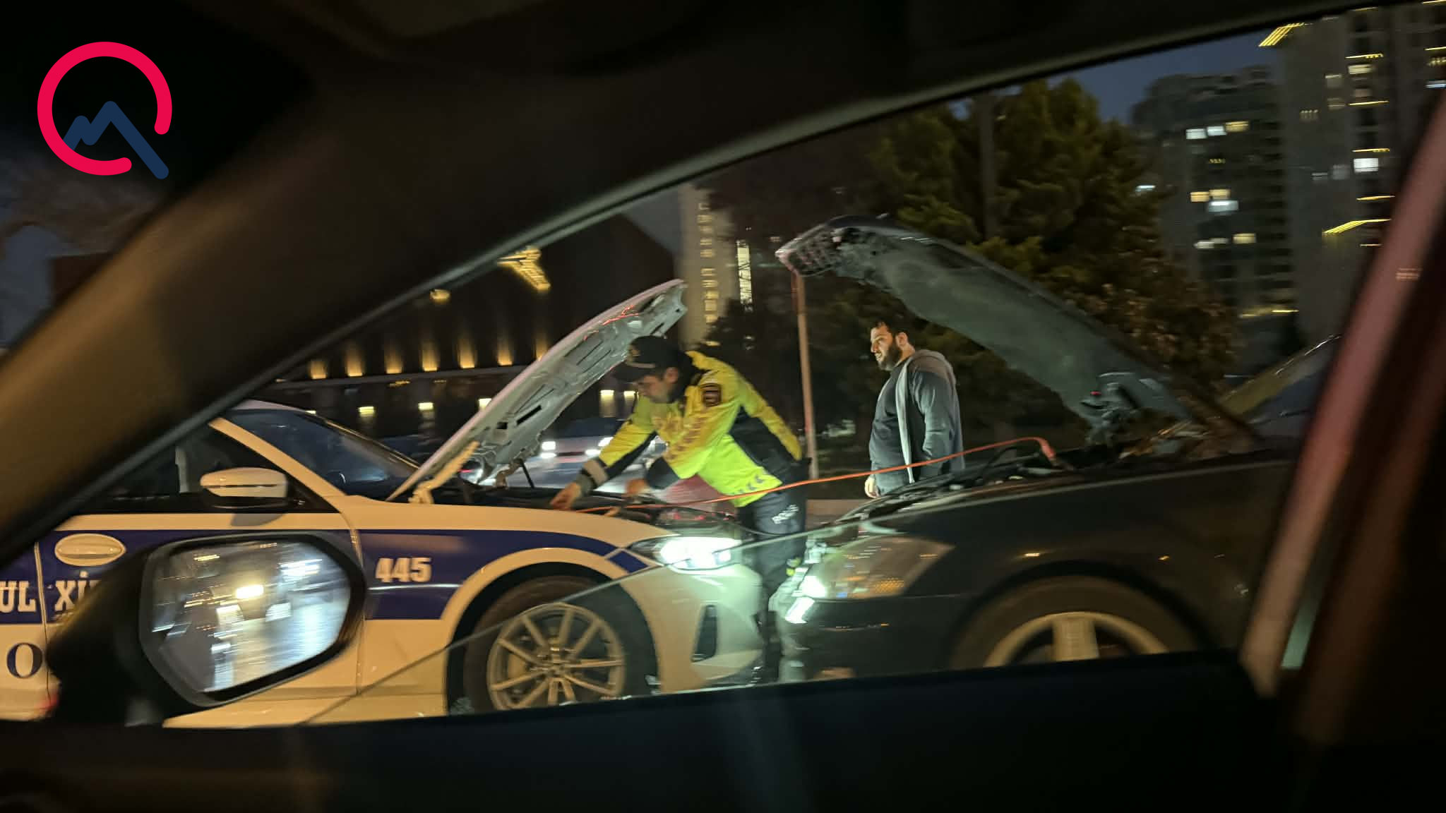 O öz avtomobilindən qarşı maşına enerji ötürərək işə düşməsinə yardım edib.