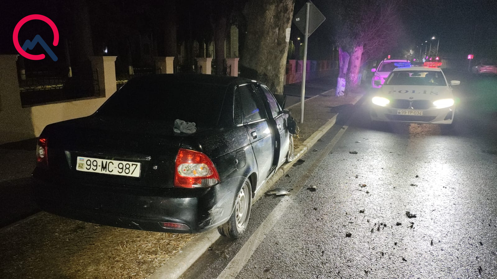Zərbənin təsirindən “Lada” markalı maşın ağaca çırpılıb.