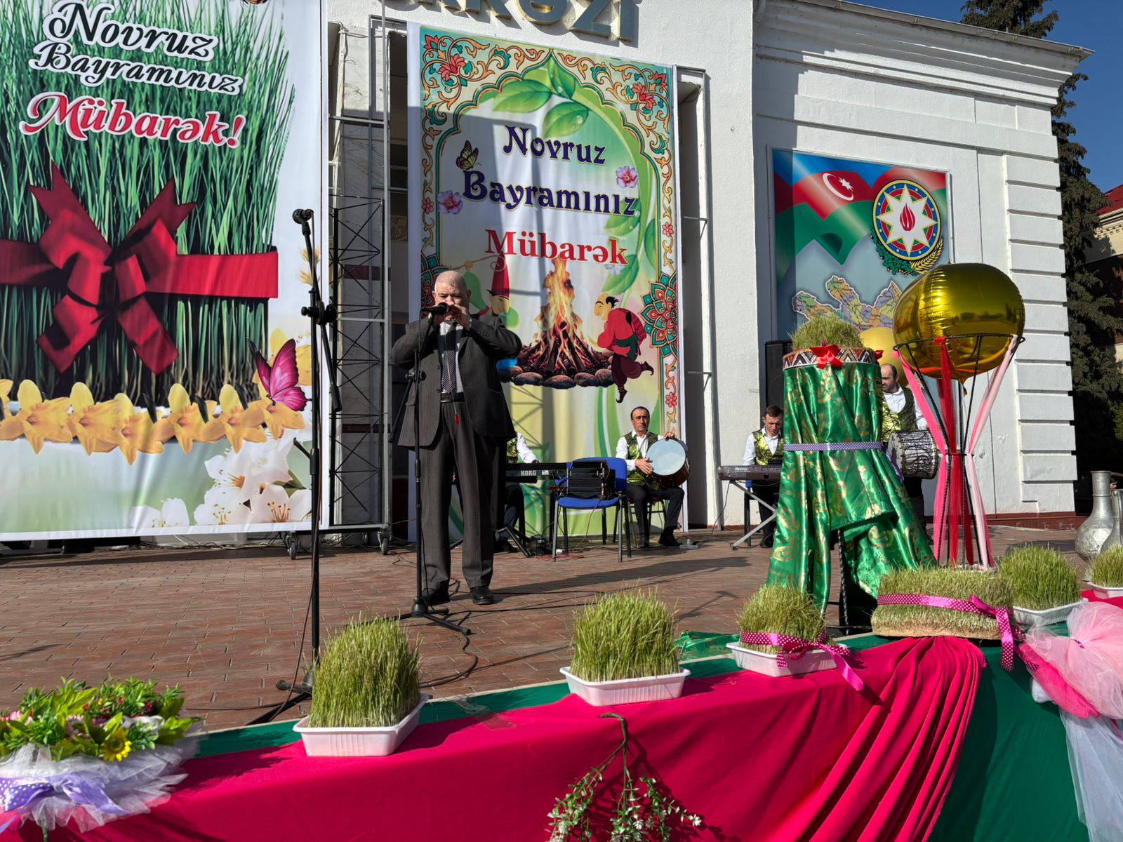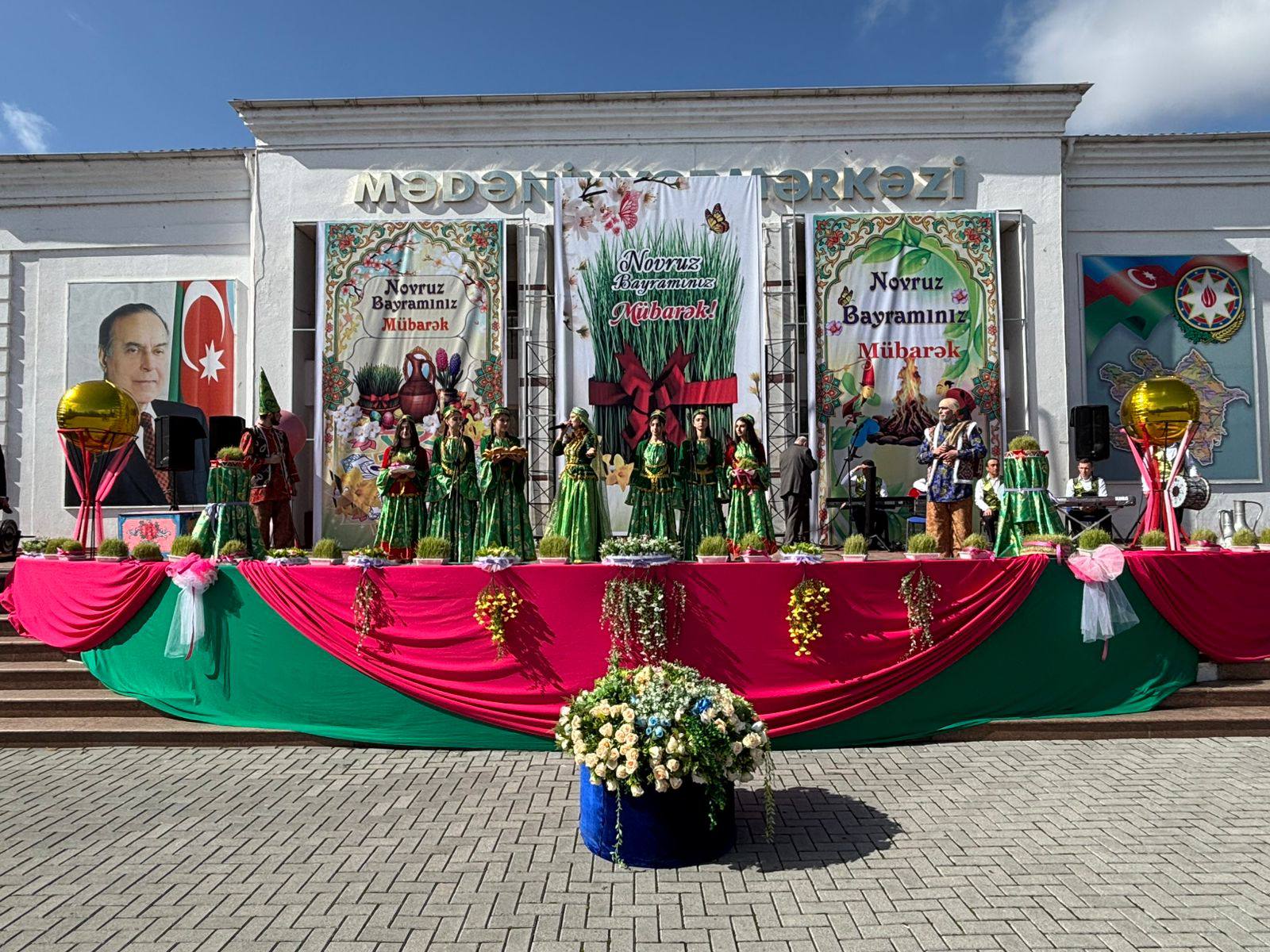 Bayram münasibətilə şəhərin al-əlvan bəzədilmiş mərkəzi meydanında təşkil edilmiş sərgidə sənətkarların əl işləri, dekorativ-tətbiqi sənət nümunələri, rəsm əsərləri, milli geyimlər, eyni zamanda Novruz süfrəsinə xas olan şirniyyatlar və milli mətbəximizə aid digər təamlar nümayiş edilib. Novruz bayramının əsas rəmzlərindən biri olan bayram tonqalı alovlandırılıb.