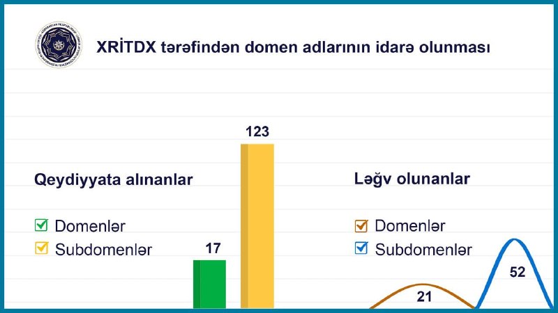 Bildirilib ki, 2026-cı ilin birinci rübü ərzində XRİTDX tərəfindən domen adlarının idarə olunması sahəsində qeydiyyata alınan domenlərin sayı 17, subdomenlərin sayı 123 təşkil etmiş, eyni zamanda 21 domen və 52 subdomen ləğv olunub ki, bu da "Gov.az" domen məkanının optimallaşdırılması və təhlükəsizlik risklərinin azaldılması baxımından mühüm əhəmiyyət kəsb edir.