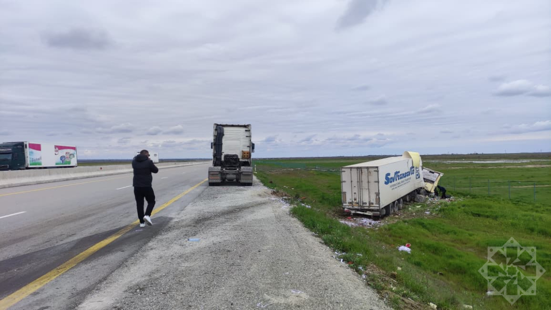 Bakı-Quba-Rusiya Federasiyası ilə dövlət sərhədi avtomobil yolunda çoxtonnajlı avtomobil aşıb.