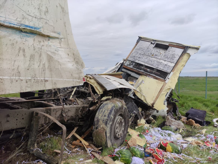 Bizim.Media xəbər verir ki, Rusiya vətəndaşına məxsus, qarpızla yüklənmiş DAF markalı yük maşını ödənişli yolun Şabran rayonu ərazisindən keçən hissəsində qəzaya uğrayıb.