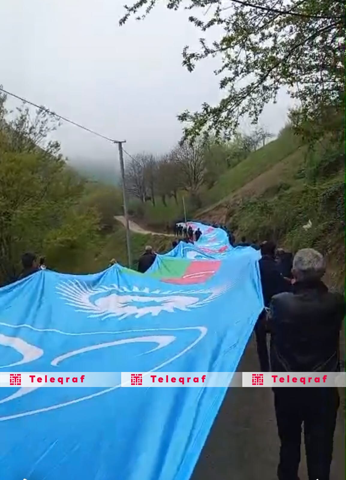 Təxminən 200-ə yaxın insanın iştirak etdiyi yürüş zamanı bayraq yol boyu dalğalandırılıb və böyük ehtiramla müşayiət olunub.