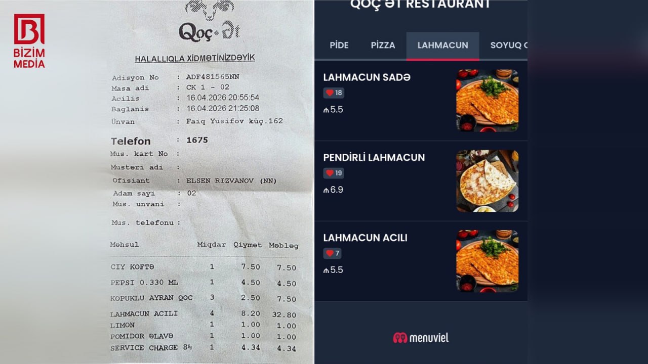 Redaksiyamıza daxil olan müştəri şikayətinə görə, tanınmış restoranlar şəbəkəsi olan “Qoç Ət”in Nərimanov filialında qiymətlə bağlı narazılıq yaranıb. Belə ki, menyudan 5 manat 50 qəpiyə sifariş etdiyi lahmacun qəbzdə 8 manat 20 qəpiyə hesablanıb. Üstəlik məhsulun keyfiyyəti də ürəkaçan olmayıb.