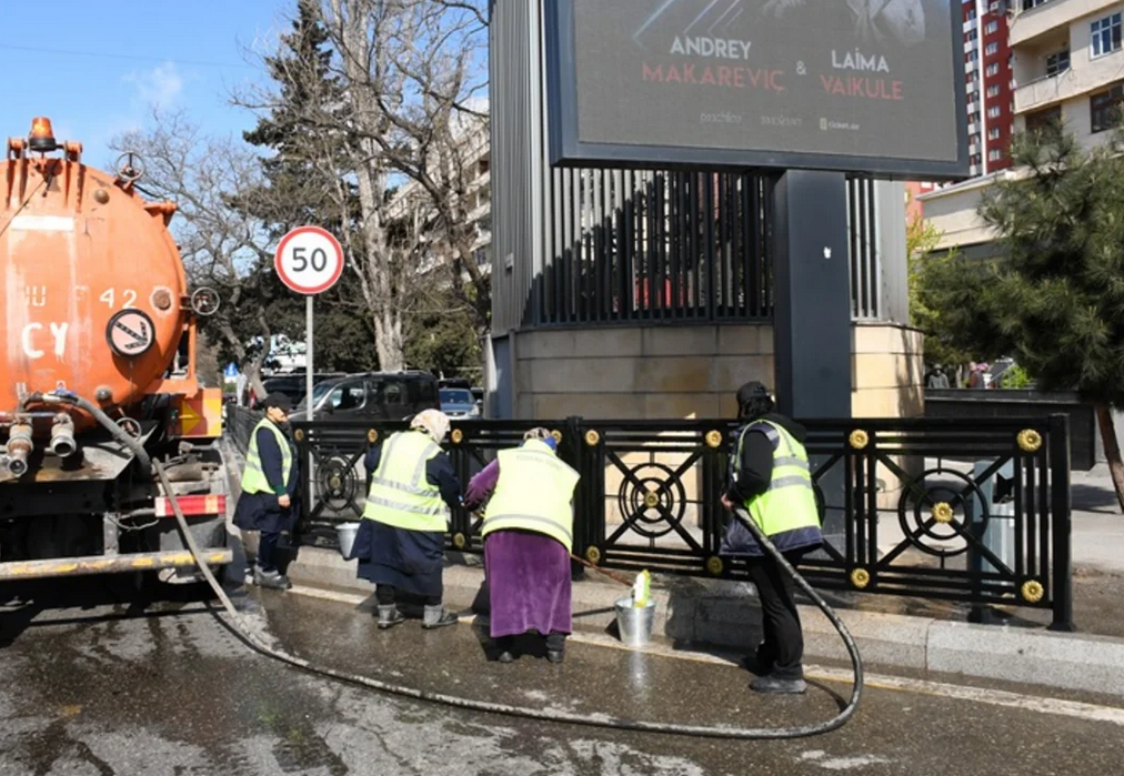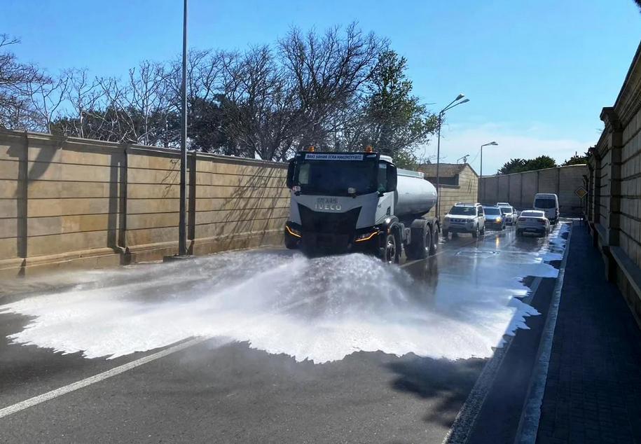 Səhər saatlarından etibarən Bakı şəhərinin və qəsəbələrin 556 küçəsi eləcə də məhəllədaxili yolların yuyucu maddələrlə yuyulması təmin edilib.