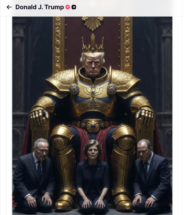 ABŞ Prezidenti Donald Tramp "Truth Social" sosial şəbəkəsində süni intellekt vasitəsilə yaradılan özünün taxt üzərində oturmuş şəklini paylaşıb.