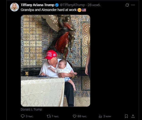 Xatırladaq ki, Tiffani amerikalı model və müğənnidir. O, Donald Trampın ikinci həyat yoldaşı, aktrisa Marla Meyplezdən yeganə qızıdır. Tiffani 2022-ci ildə iş adamı Maykl Boulos ilə evlənib.