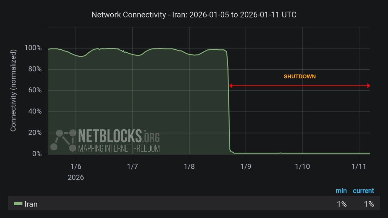 İranda molla rejimi kütləvi etirazları yatırmaq məqsədilə ölkəmiqyaslı bağlantı blokadası tətbiq edib. Ölkədə mobil data, sabit xətli internet və hətta ev telefonları və bir sıra mobil nömrələr də bloklanıb.
