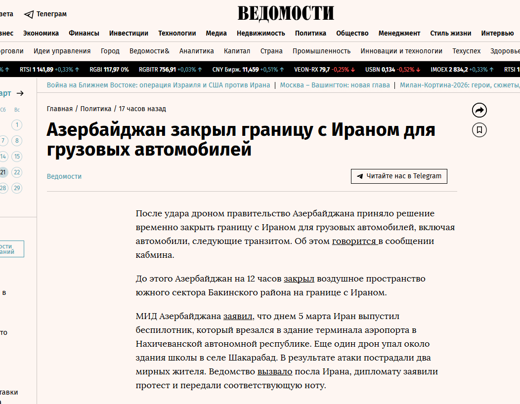 “Nur.kz” yazır ki, Azərbaycan Prezidenti İranın hücumundan sonra təcili olaraq Təhlükəsizlik Şurasının iclasını çağırıb. Məqalədə vurğulanıb ki, Prezident İlham Əliyev İran tərəfindən Azərbaycana qarşı terror aktının törədildiyini bildirib.