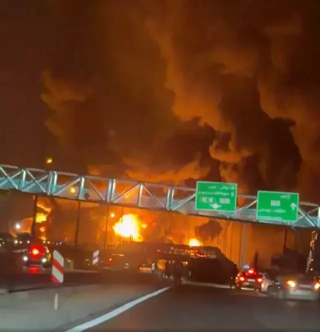 Sosial şəbəkələrdə yayılan görüntülərdə Tehrandakı neft anbarlarının yanması əks olunub. Alovların şəhərin uzaq hissələrindən də göründüyü qeyd edilir.