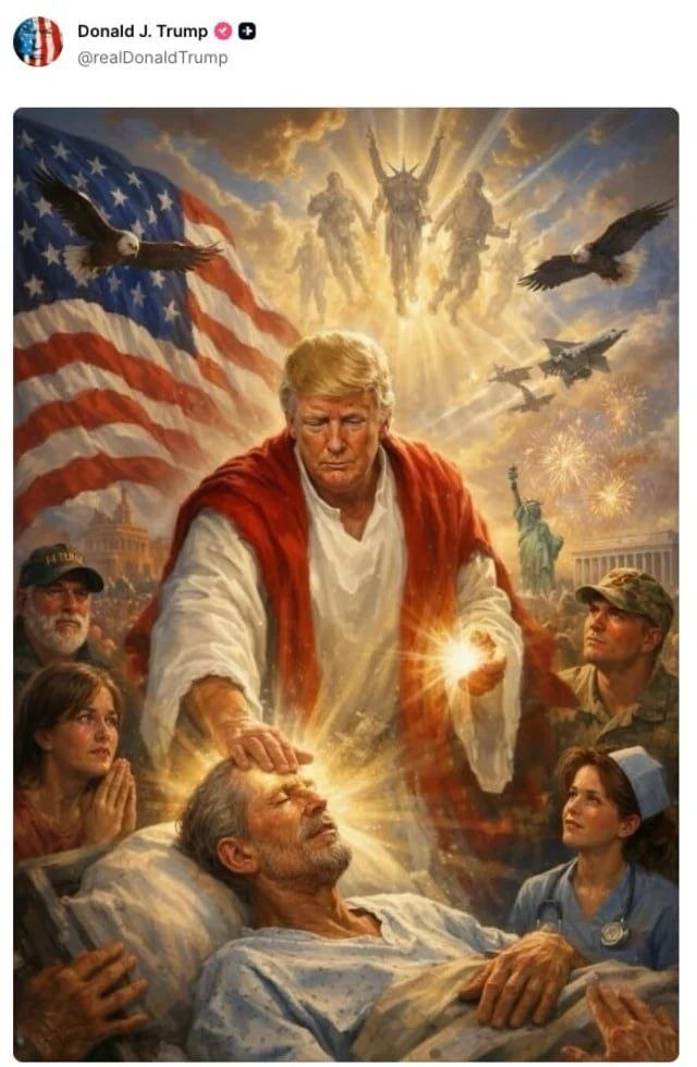 Bizim.Media xəbər verir ki, ABŞ lideri “Truth Social” hesabında özünün İsa Məsihə bənzəyən obrazda təsvir olunduğu fotoşəkil paylaşıb.