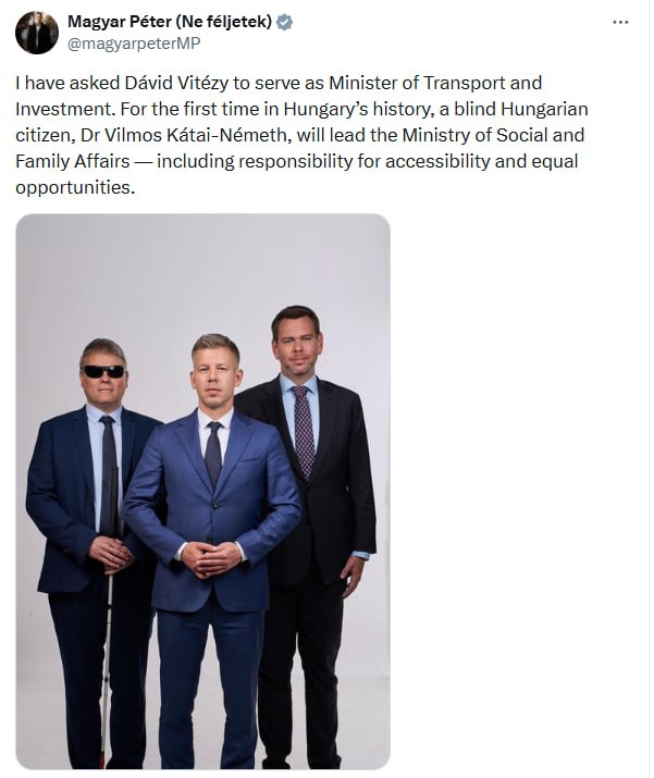 Macarıstanın gələcək baş naziri Peter Madyar nəqliyyat və investisiyalar naziri vəzifəsinə David Vitezini, sosial və ailə məsələləri naziri postuna isə Vilmoş Katai-Nemeti təklif etdiyini açıqlayıb.