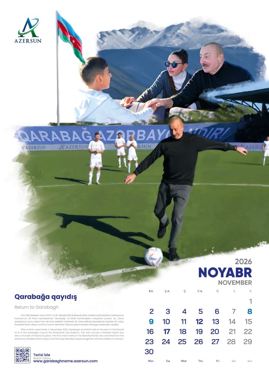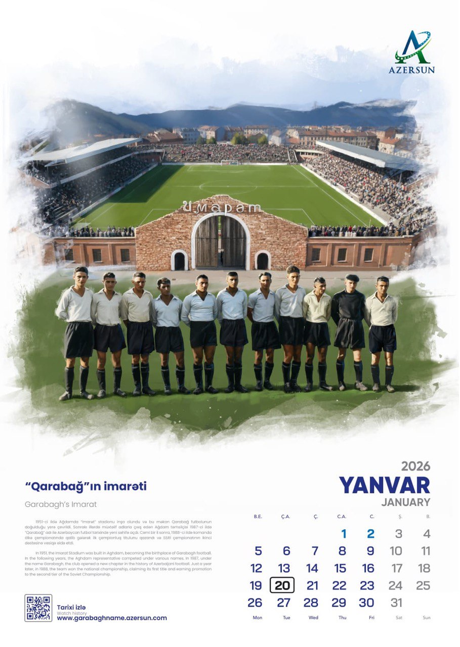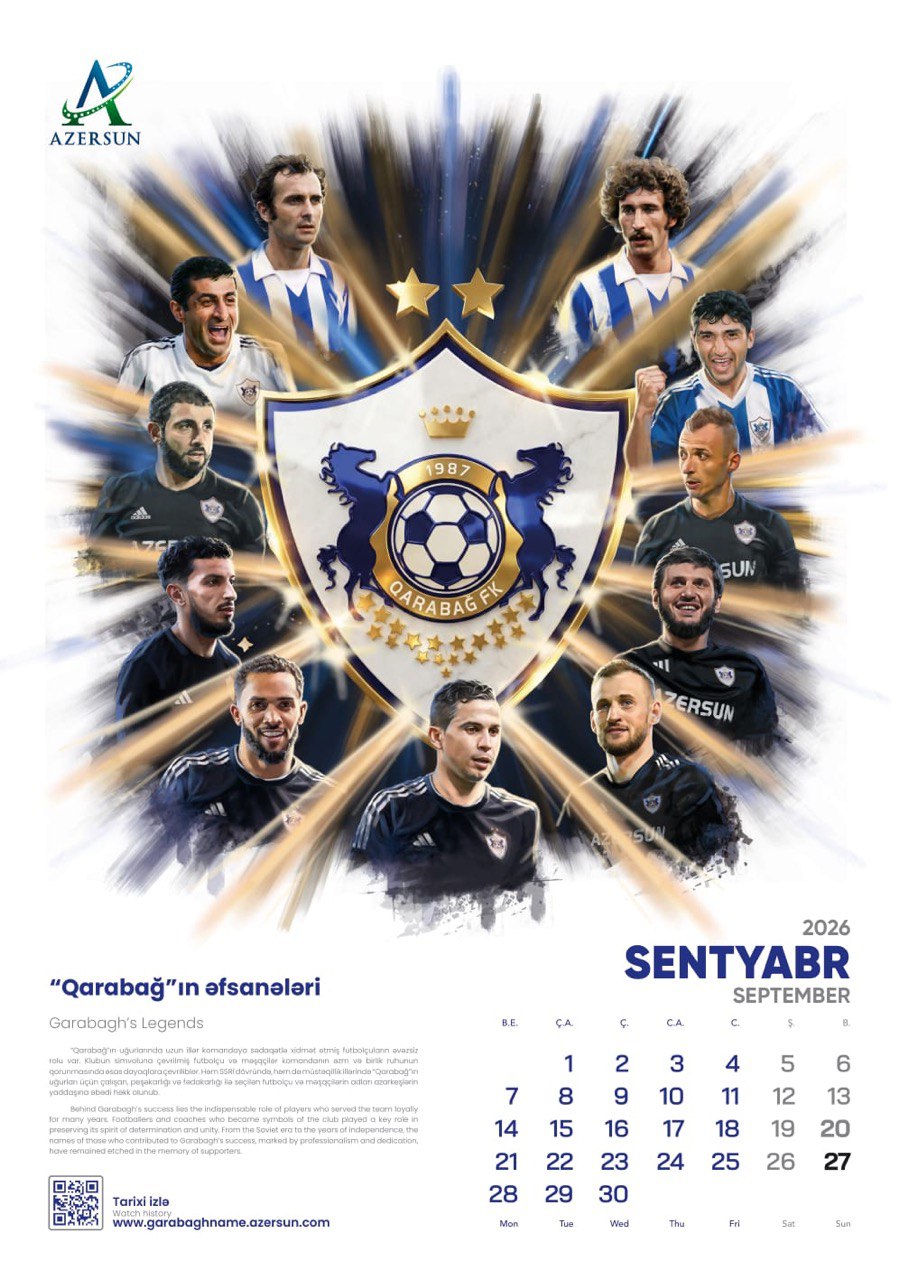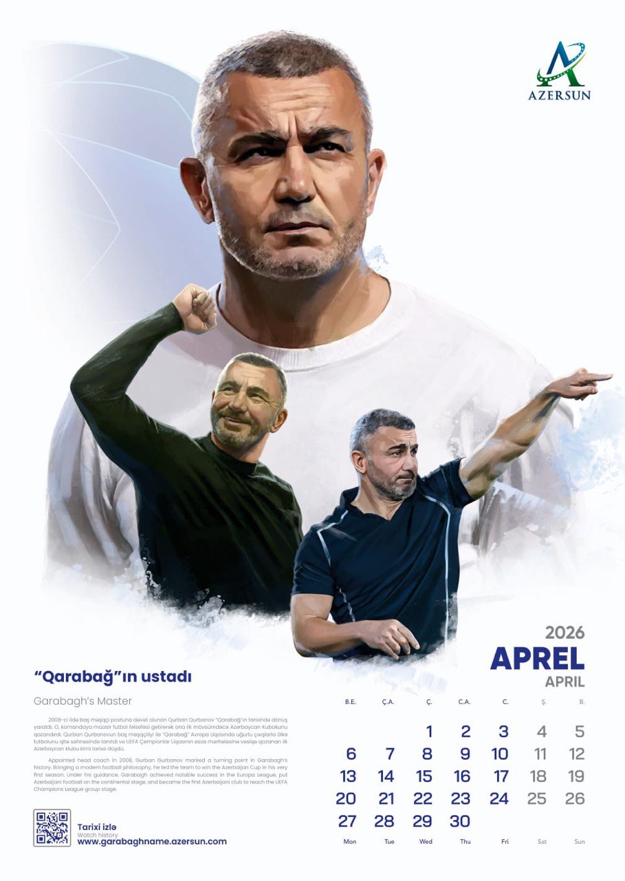 Bizim.Media xəbər verir ki, 2026-cı il üçün hazırlanan bu təqvim son illərdə futbol sahəsində qızıl dövrünü yaşayan “Qarabağ” futbol klubuna həsr olunub.