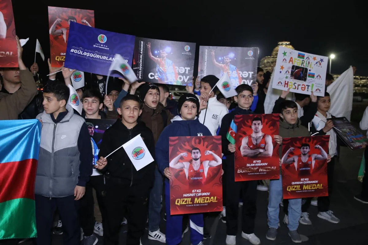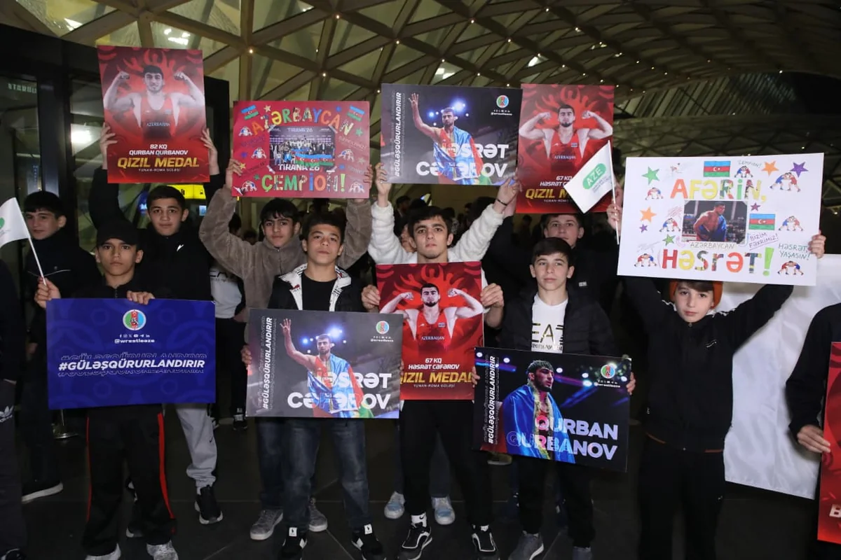 Albaniyada keçirilən Avropa çempionatında 2 qızıl, 3 bürünc medal qazanaraq komanda hesabında Avropa çempionu olan yunan-Roma güləşi üzrə milli komandanın Heydər Əliyev Aeroportunda qarşılanma mərasimi keçirilib.