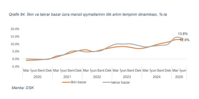 Son 5 il ərzində (2020-ci ilin iyun ayı ilə müqayisədə) Azərbaycanda ilkin və təkrar bazarda mənzil qiymətləri 46% artıb.