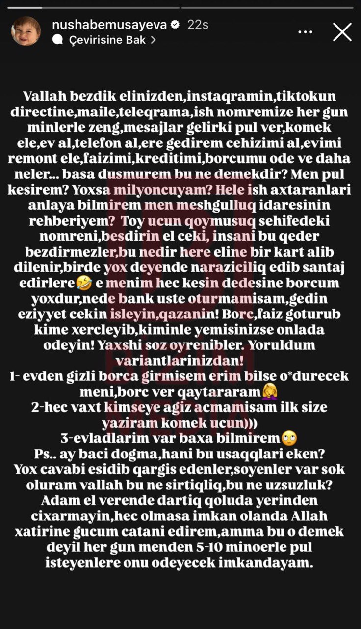 Bizim.Media xəbər verir ki, Nüşabə ondan pul istəyən izləyicilərinə sərt reaksiya verib:
