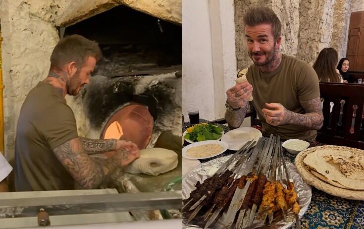 Görüntülərdə Bekhemin Dohada təndirə çörək yapdığı, kabab yediyi əks olunub. /Axşam.az