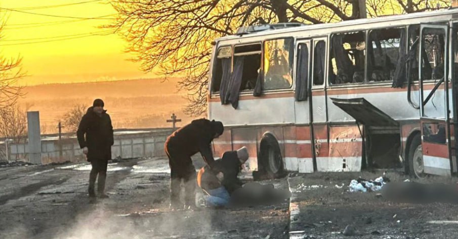 Fevralın 1-də Rusiya ordusu Ukraynanın Dnepropetrovsk bölgəsində avtobusa dronla hücum edib. Hücum nəticəsində 15 nəfər ölüb, 7 nəfər yaralanıb.
