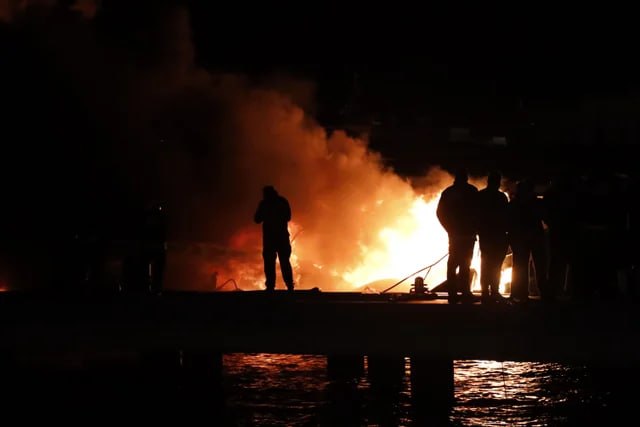 Yanğınsöndürmə qüvvələri dəyəri milyonlarla dollar məbləğində olan yaxtalarda alovları söndürmək üçün həm qurudan, həm də dənizdən səylər göstərirlər.