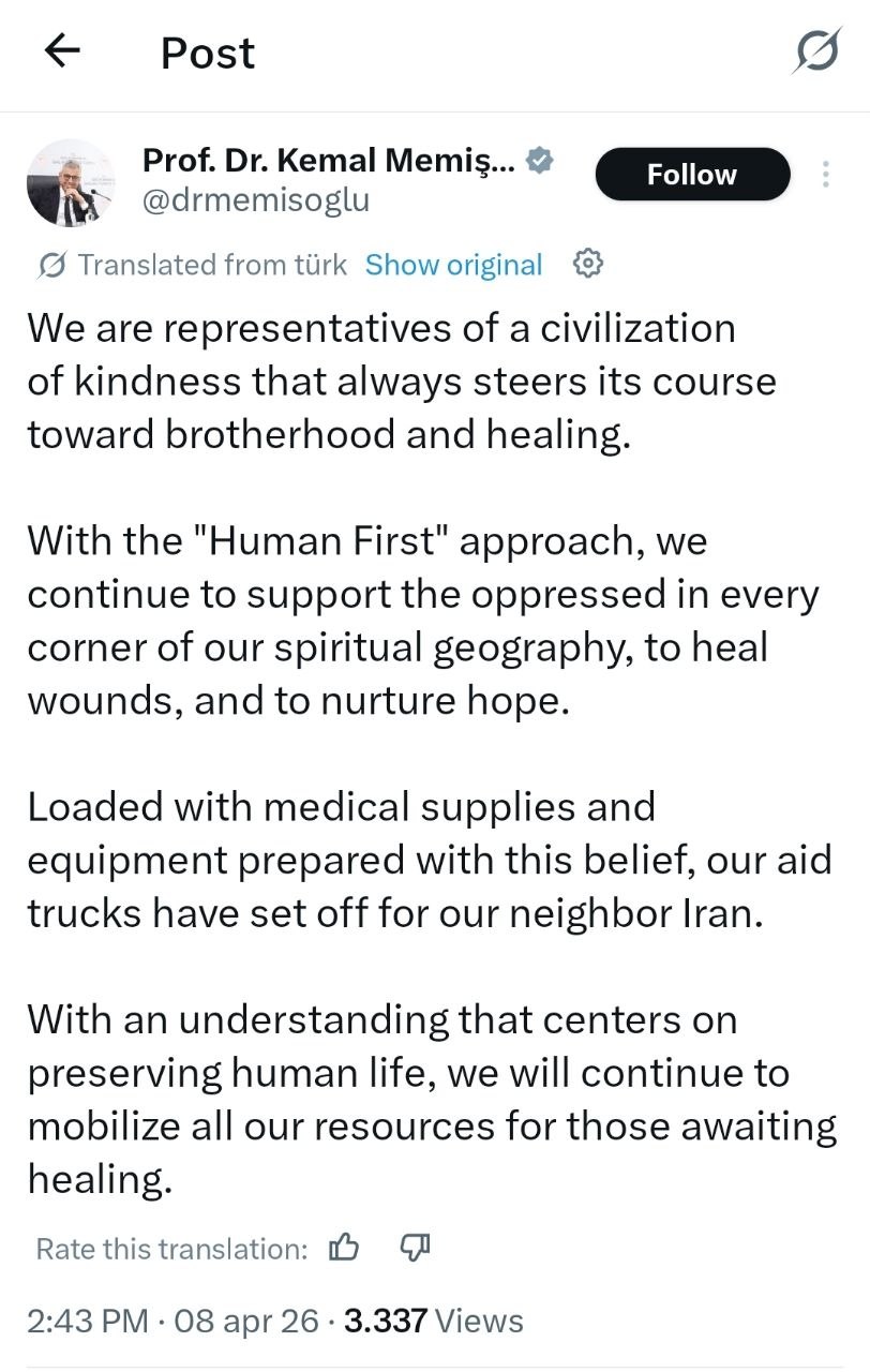 Bizim.Media xəbər verir ki, bu barədə Türkiyənin səhiyyə naziri Kemal Memişoğlu özünün "X" sosial media hesabında yazıb.
