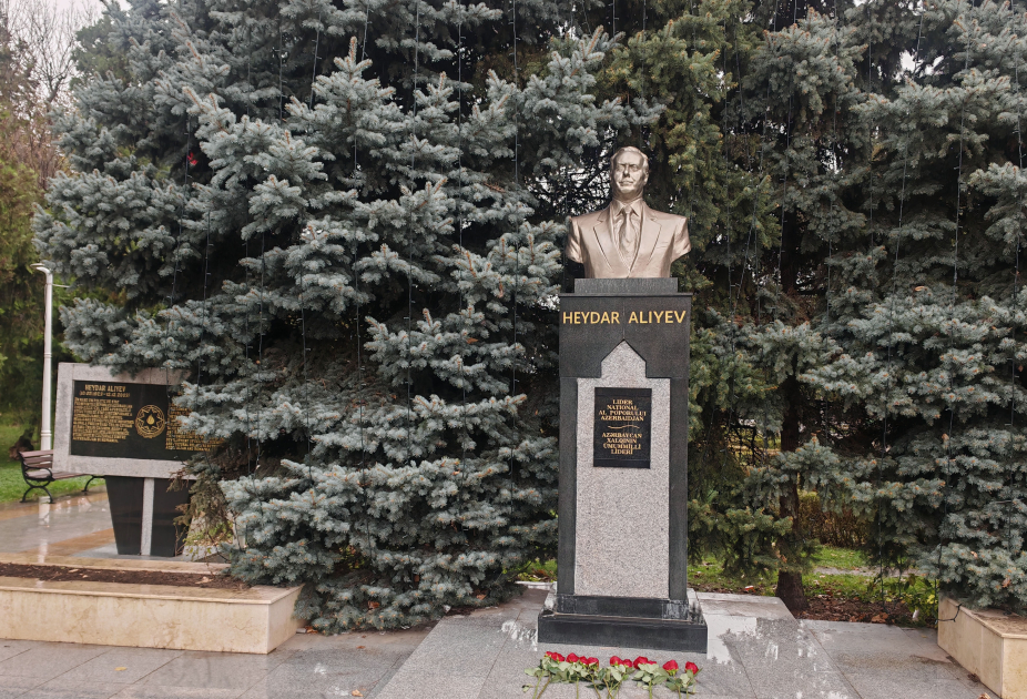 Bizim.Media xəbər verir ki, tədbirdə Ümummilli Liderin əziz xatirəsi ehtiramla yad olunub, büstün önünə gül dəstələri düzülüb.