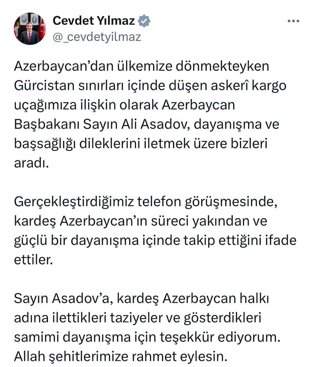 Bizim.Media xəbər verir ki, bu barədə C.Yılmaz "X" hesabında yazıb.