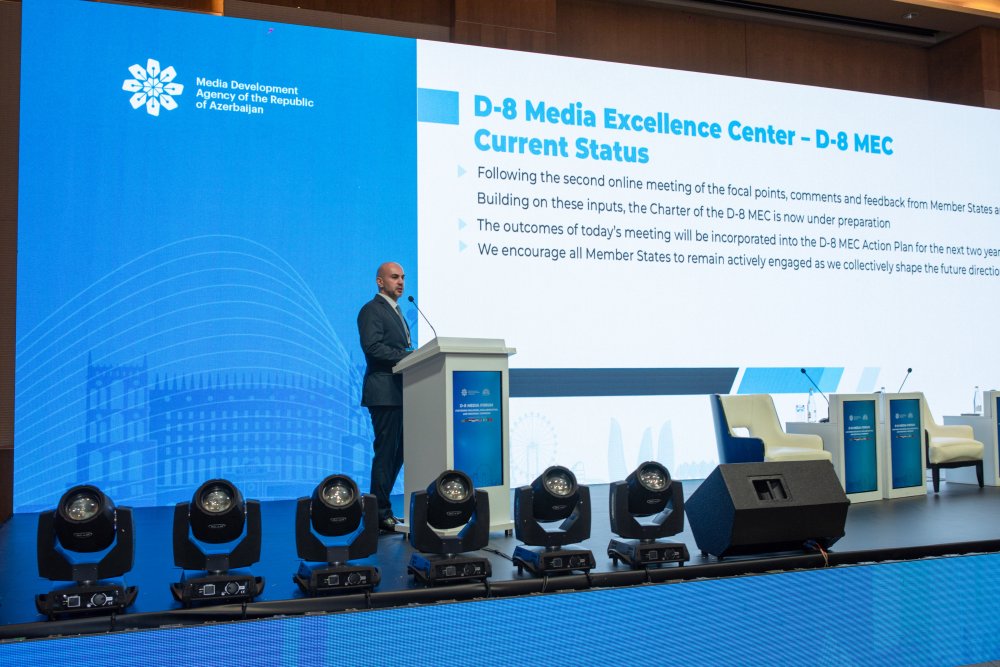 Təqdimatda D-8 İqtisadi Əməkdaşlıq Təşkilatının tamhüquqlu üzvü kimi Azərbaycanın ötən müddət ərzində həyata keçirdiyi tədbirlər və irəli sürdüyü təşəbbüslər barədə ətraflı məlumat verilib, xüsusilə D-8 Media Mükəmməllik Mərkəzinin yaradılması istiqamətində görülən işlər, onun struktur və funksional istiqamətləri, eləcə də üzv dövlətlər arasında media sahəsində bilik və təcrübə mübadiləsini təşviq edəcək platformaların formalaşdırılması üzrə nəzərdə tutulan addımlar diqqətə çatdırılıb.