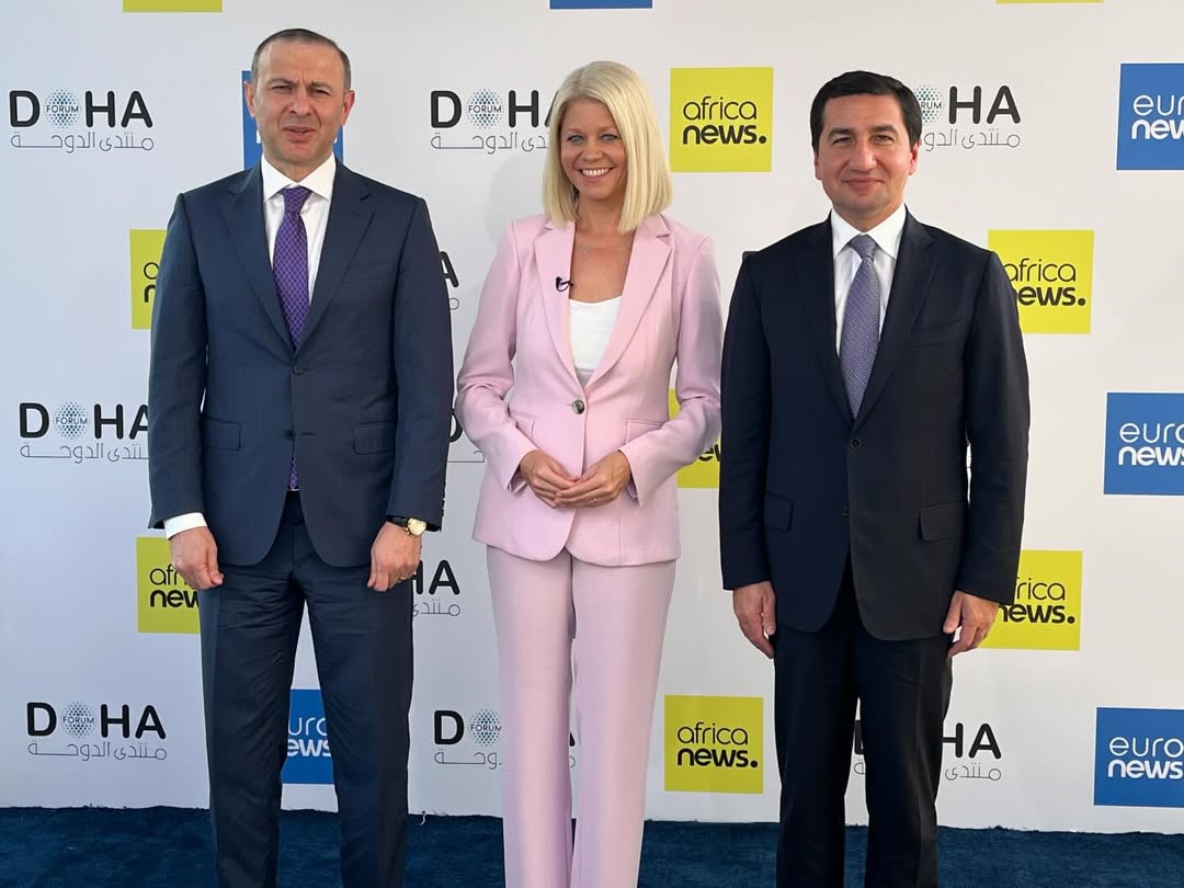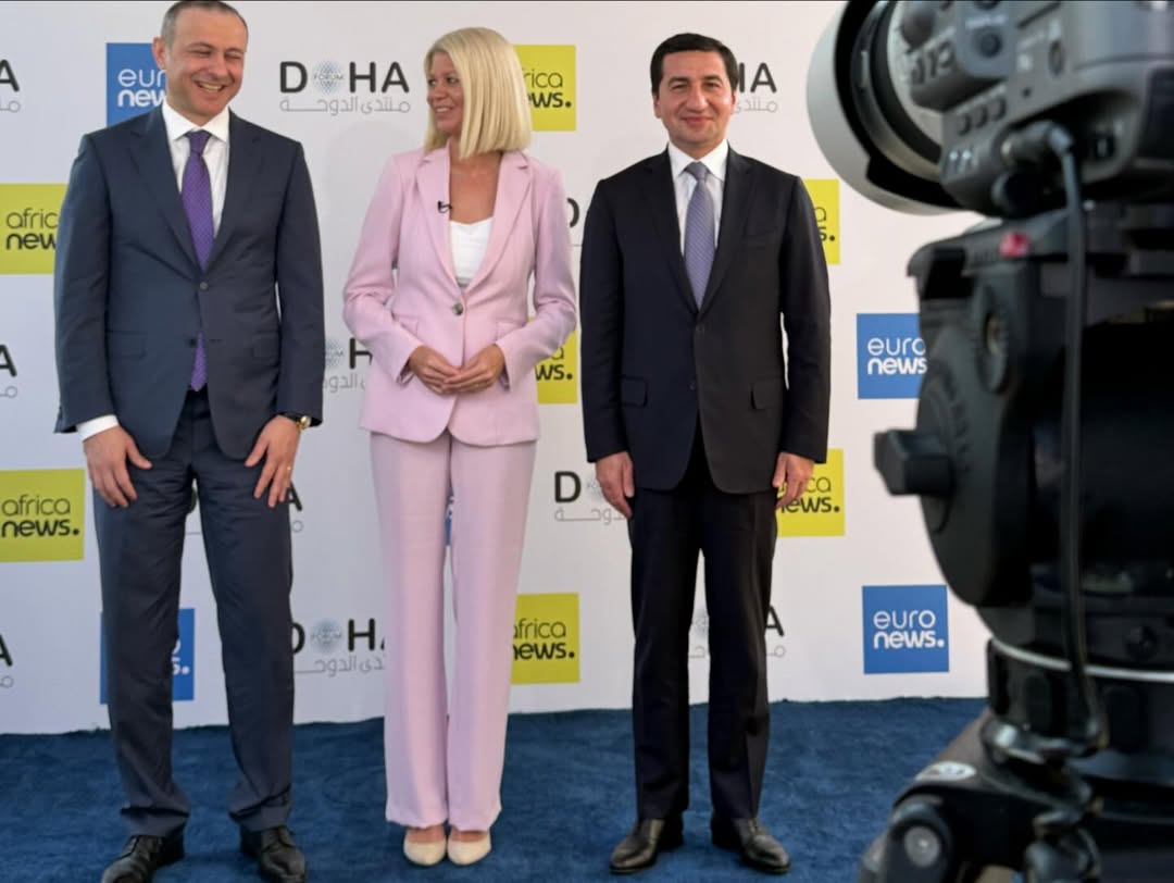 Azərbaycan Prezidentinin köməkçisi – Prezident Administrasiyasının Xarici siyasət məsələləri şöbəsinin müdiri Hikmət Hacıyev Ermənistan Təhlükəsizlik Şurasının katibi Armen Qriqoryanla birlikdə ilk dəfə Dohada “Euronews” telekanalına müsahibə veriblər.