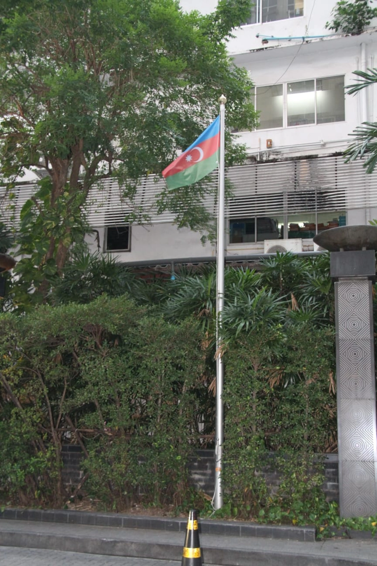 Nazir müavini səfirliyin yerləşdiyi binanın qarşısında Azərbaycanın dövlət bayrağını ucaldıb.