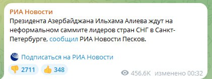 Azərbaycan Prezidenti İlham Əliyevin dekabrın 21-22-də Sankt-Peterburqda keçiriləcək MDB dövlət başçılarının qeyri-rəsmi sammitində iştirakı gözlənilir.